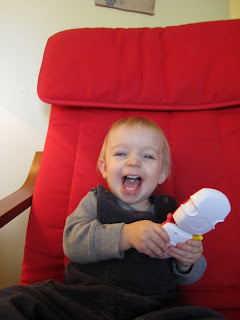 Poor Liam was all scrunched in the car. Seriously. The stuff. It was crazy. (Oh and notice his favorite Christmas gift - an old remote)
